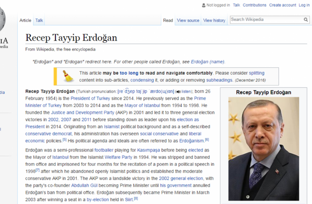 Erdogan Described As Turkish Dictator On Wikipedia In Wake Of